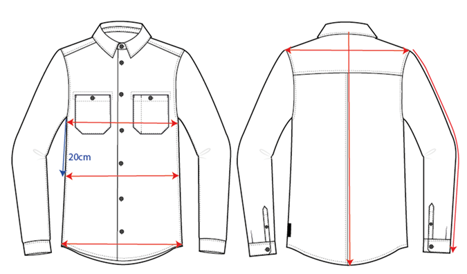 • Chest pockets with buttoned fastening