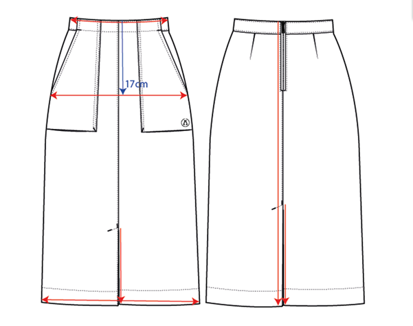 1/2 HIP17cm down from Centre front waist edge - straight across