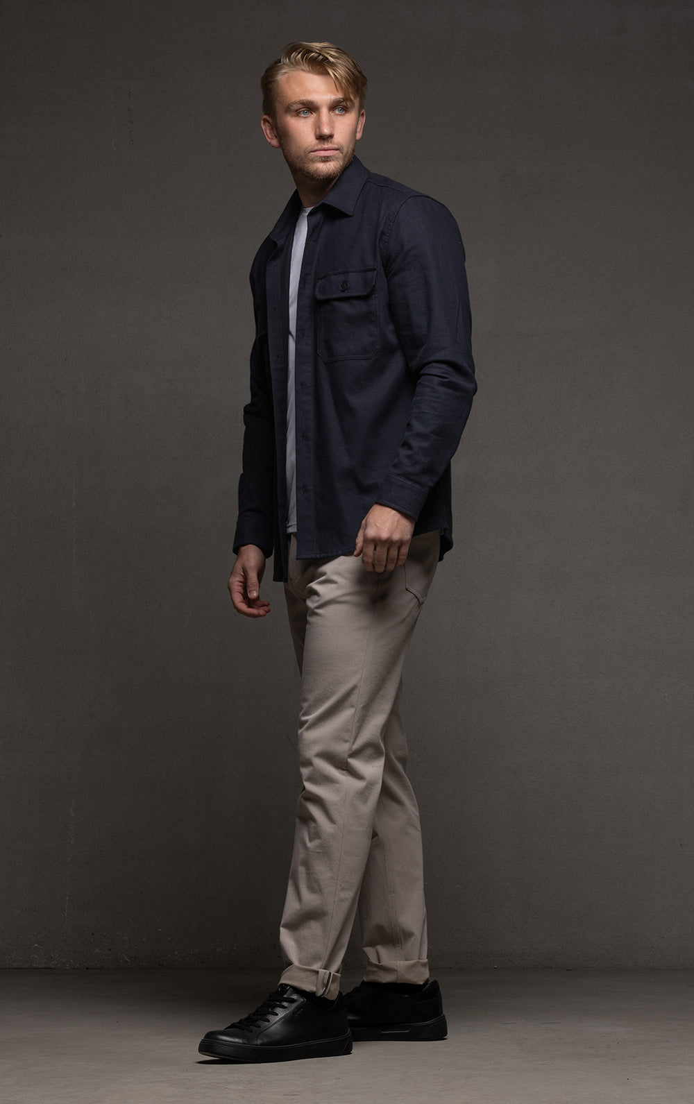 Complete your look with our Men's Cotton Flannel Overshirt. Winter layering is easy with this relaxed yet refined look. This style is an oversized fit, and includes chest pockets, penholder, button cuffs, and a brushed flannel finish