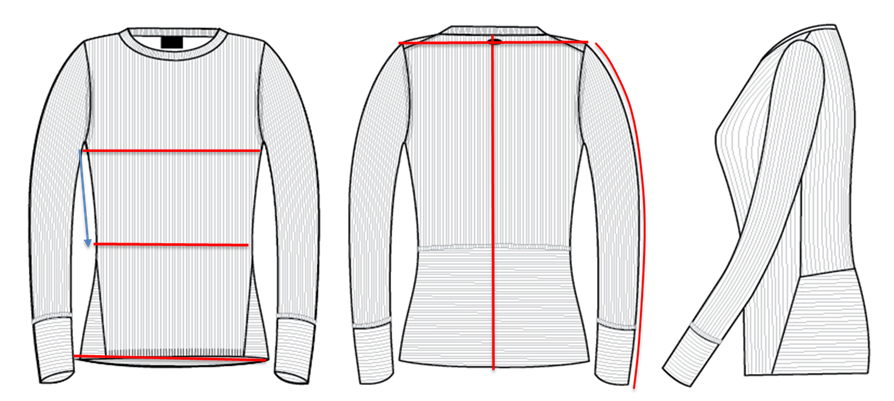 | CENTRE BACK LENGTH | Neck seam to hem edge at centre back |