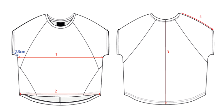 1/2 CHEST | 2.5cm down from underarm - across front | 51 | 53.5 | 56 | 58.5 | 61 | |||