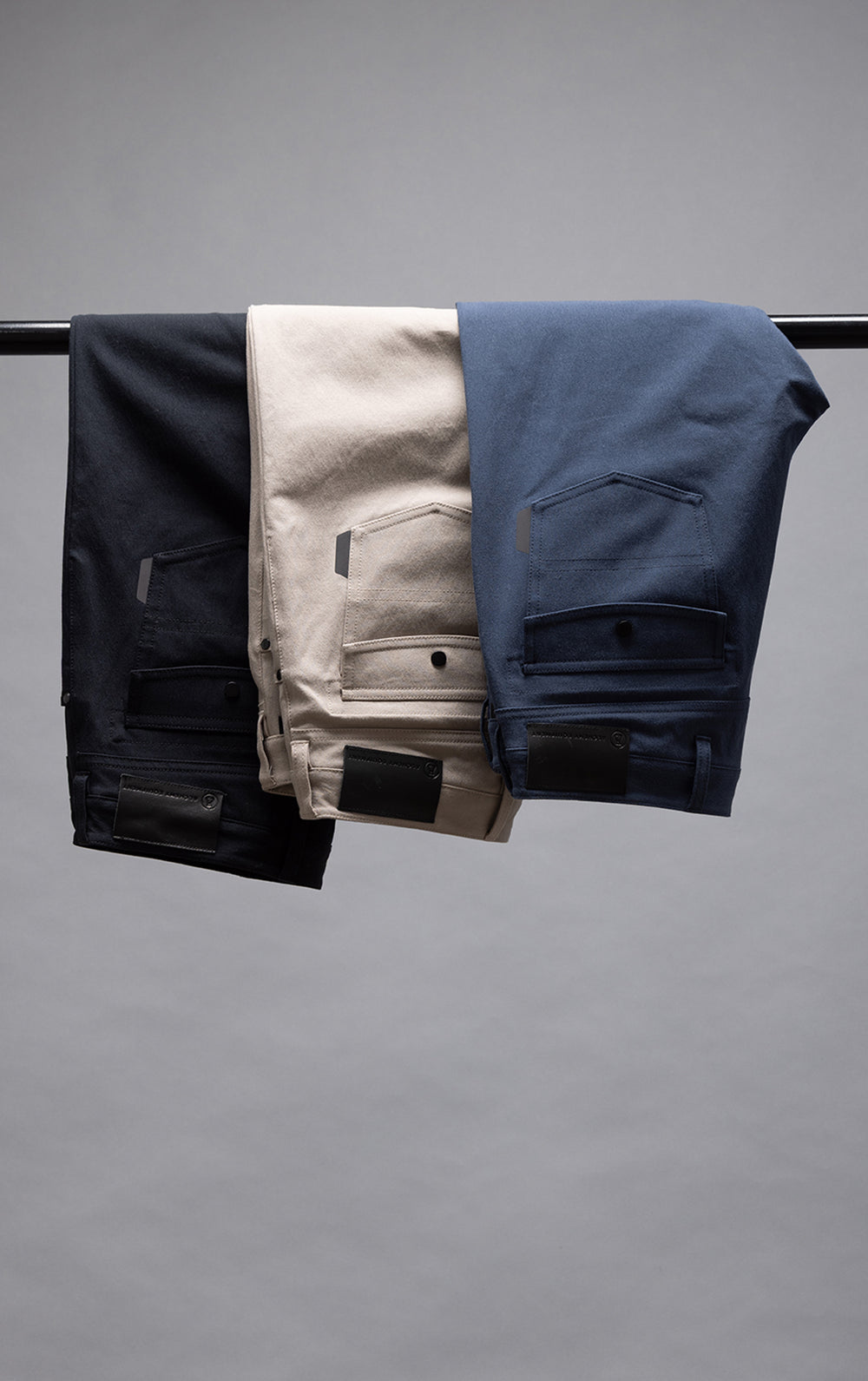 • Reflective detail on right back pocket and on the inside of the outer leg seams, to be rolled up for commuting
