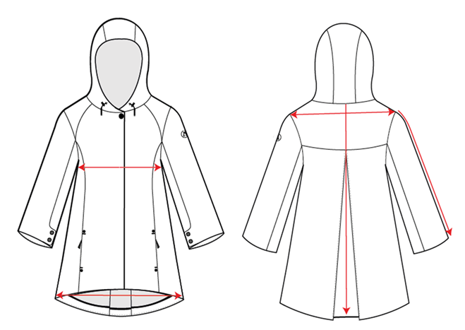| CENTRE BACK LENGTH | Centre back neck seam to centre back hem edge | 74.3 | 75.8 | 77.3 | 78.8 | 80.3 | |||