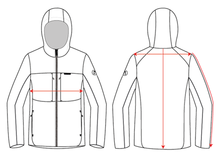 | 1/2 CHEST | 54 | 56.5 | 59 | 61.5 | 64 |