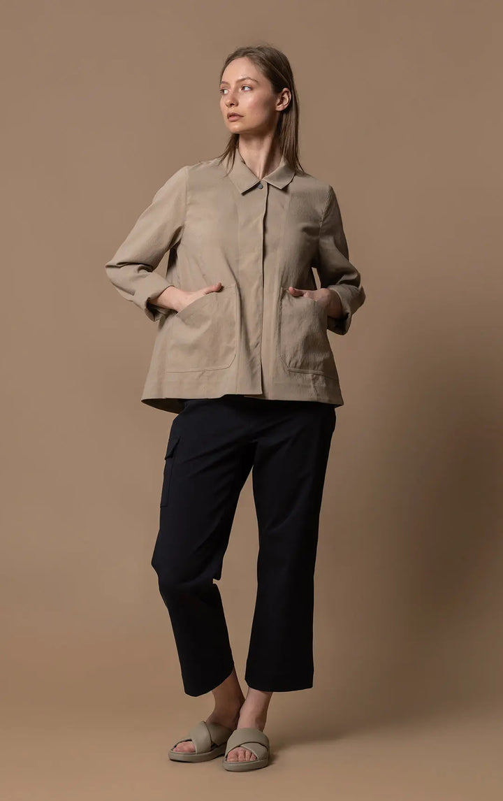 Crisp and instantly smart, and with two huge pockets that can hold the contents of a handbag without changing the fall of the jacket. Brilliant. I now have three.