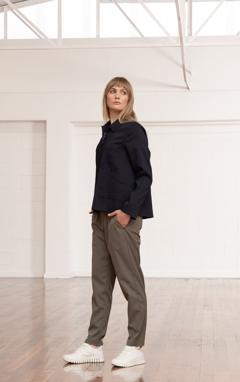 • Cropped relaxed fit through the body with a more tailored fit across shoulders