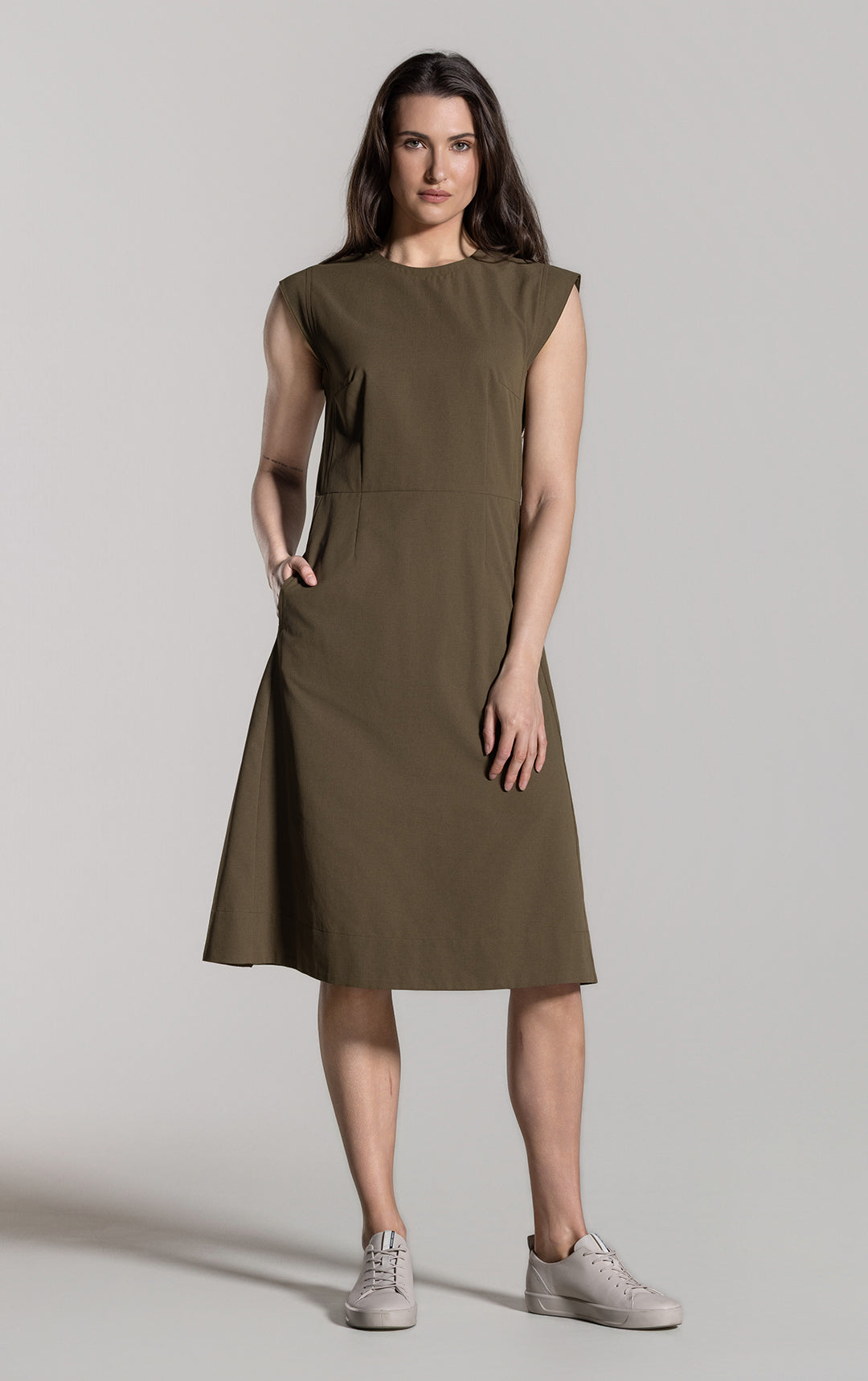 The Airventure Cap Sleeve Dress is a fit and flare style that will complete your warm weather wardrobe. Travel light and in style with this casual dress. You can dress this style up with a heel or down with a sneaker. Go minimalist or add your favourite accessories. Plus, it has pockets!
